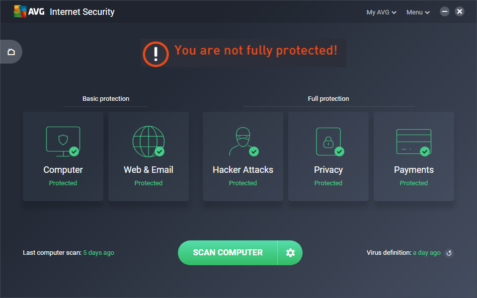 - Om det endast är grönt på Computer och Web & Email och du har AVG Anti-Virus, så är det rätt.